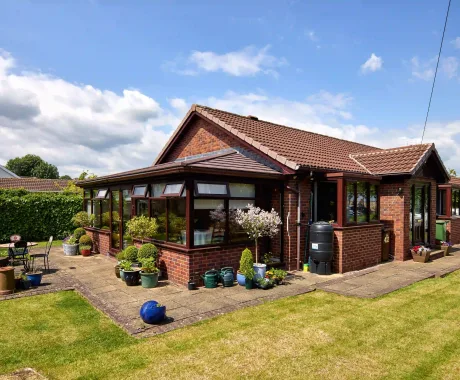 Working with our design consultant, he decided upon a beautiful Single-Storey Extension, with a Solid Tiled Roof and Chartwell Green French Doors.